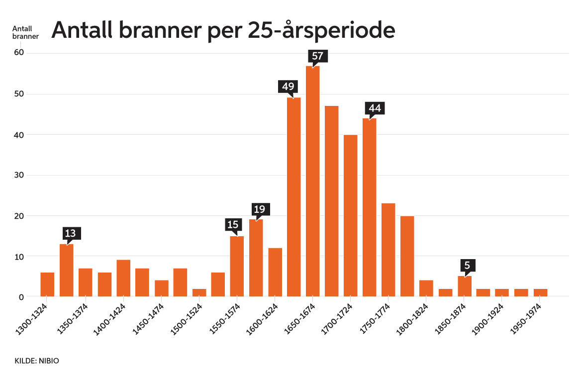 Forklaringen på endringen i brannfrekvens finner vi i historiske kilder. De forteller at folketallet steg kraftig på 1600-tallet, og at folk benyttet brann til å bedre utmarksbeitet for husdyra. Flere steder drev beboerne i skogen med svedjebruk eller bråtebrenning til dyrking av rug og nepe.